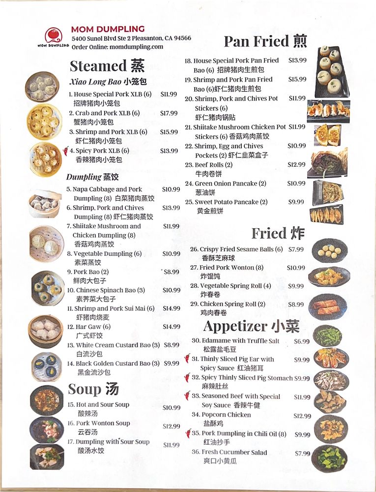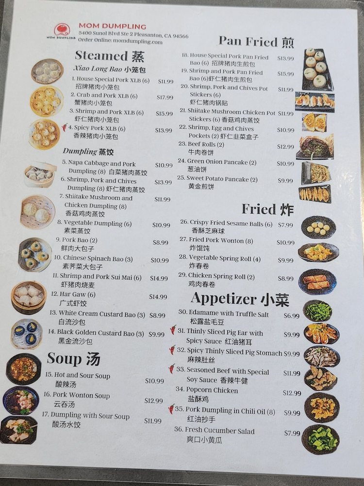 Mom Dumpling is a Chinese restaurant located in Pleasanton, CA, offering a wide variety of steamed, pan-fried, and fried dumplings. Their menu includes specialties like House Pork Xiao Long Bao, Crab and Pork Xiao Long Bao, and Vegetable Steamed Dumplings. Customers have praised the delicious taste and reasonable prices of their dishes. Mom Dumpling also provides options for takeout, catering, and outdoor seating, making it a versatile dining experience. The restaurant's cozy mom-and-pop shop atmosphere and fast service have received positive feedback from patrons. Whether you're a fan of traditional favorites like XLB and bao or looking to try something new like their crispy green onion pancakes, Mom Dumpling has something for everyone. Don't miss out on their flavorful offerings and friendly service.
